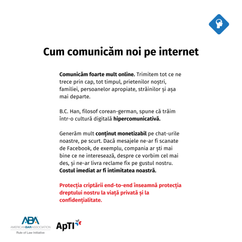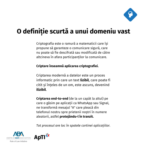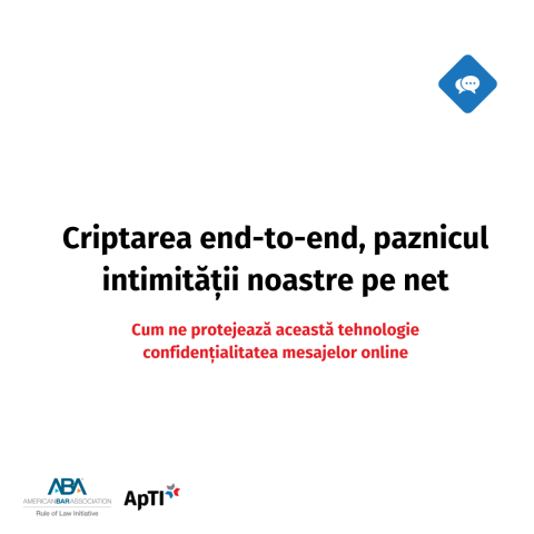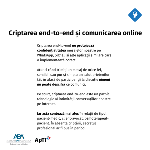 Atașăm, în această postare, un rezumat al articolului nostru despre criptarea end-to-end, sub forma unor slide-uri succinte. Acestea sunt licențiate liber (CC BY). Ele pot fi preluate, modificate sau reutilizate fără acordul nostru, ci doar cu menționarea corectă și legală a sursei.