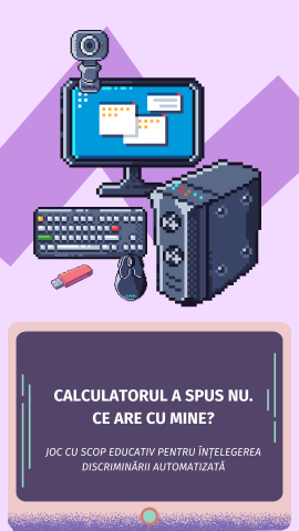 Atașăm acestui articol un joc pe care l-am gândit pentru a face niște experimente cu emoțiile pe care le provoacă situațiile de discriminare automatizată. Jocul poate fi extins cu alte situații, Materialul e potrivit pentru a fi jucat la clasă, dar și în comunități în care se discută problema deciziilor automatizate care se iau despre noi și despre viețile noastre.