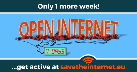 VIENA/Bruxelles, 11 iulie 2016 – Activiștii de la SaveTheInternet.eu, o coaliție internațională de ONG-uri care luptă pentru neutralitatea Internetului, mai au o săptămână pentru a se face auziți: UE trebuie să protejeze neutralitatea Internetului. Mesajul lor este îndreptat către BEREC (Body of Regulators for Electronic Communications - Organismul Autorităților Europene de Reglementare în Domeniul Comunicațiilor Electronice), care redactează noul ghid privind neutralitatea Internetului. Cu termenul de 18 iulie apropiindu-se cu repeziciune, industria de telecomunicații a intrat în acțiune, dezvăluindu-și planurile pentru un Internet restricționat.